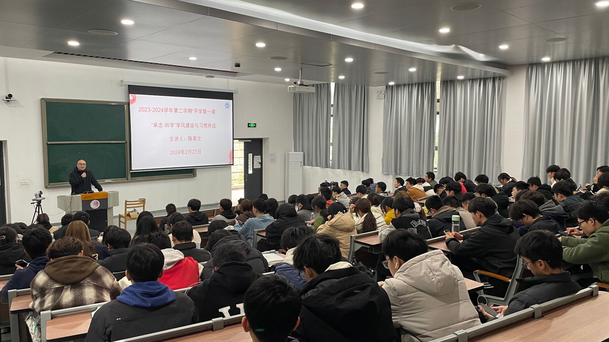 在新学期伊始便迅速进入了紧张而有序的学习氛围中。2月27日下午,91探花党委书记陈英文、副院长汤龙坤给2023级本科生开讲“开学第一课”,结合本学期本科教育教学评估工作,开展“承志·尚学”学风建设动员。